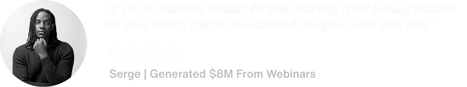 We don't have order-bumps like everyone, we made this offer so that you can launch and validate your webinar funnel fast. But if you need more help maximizing your cash collected from a webinar funnel or need help executing a launch, we offer a DFY offer for a select clients (by application only) that we can share if we see there's a fit.