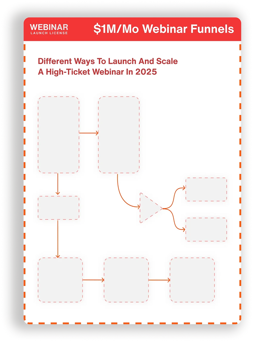 You'll get access to every profitable webinar that's mapped out from A-Z (free webinars, free + VIP, and paid challenge funnels) and has been used by our clients and some of the top 8-figure personal brands in the space, so that you can pick the right webinar funnel structure to maximize registrants and the overall cash collected.